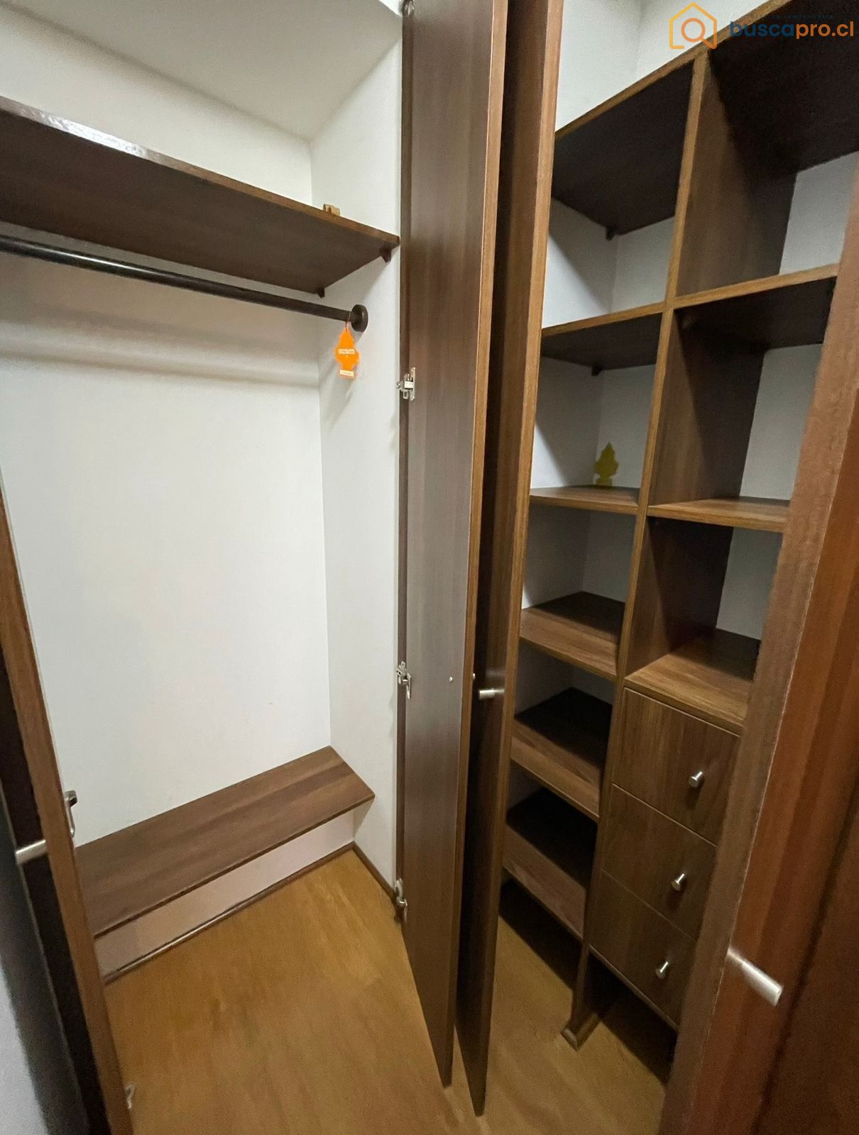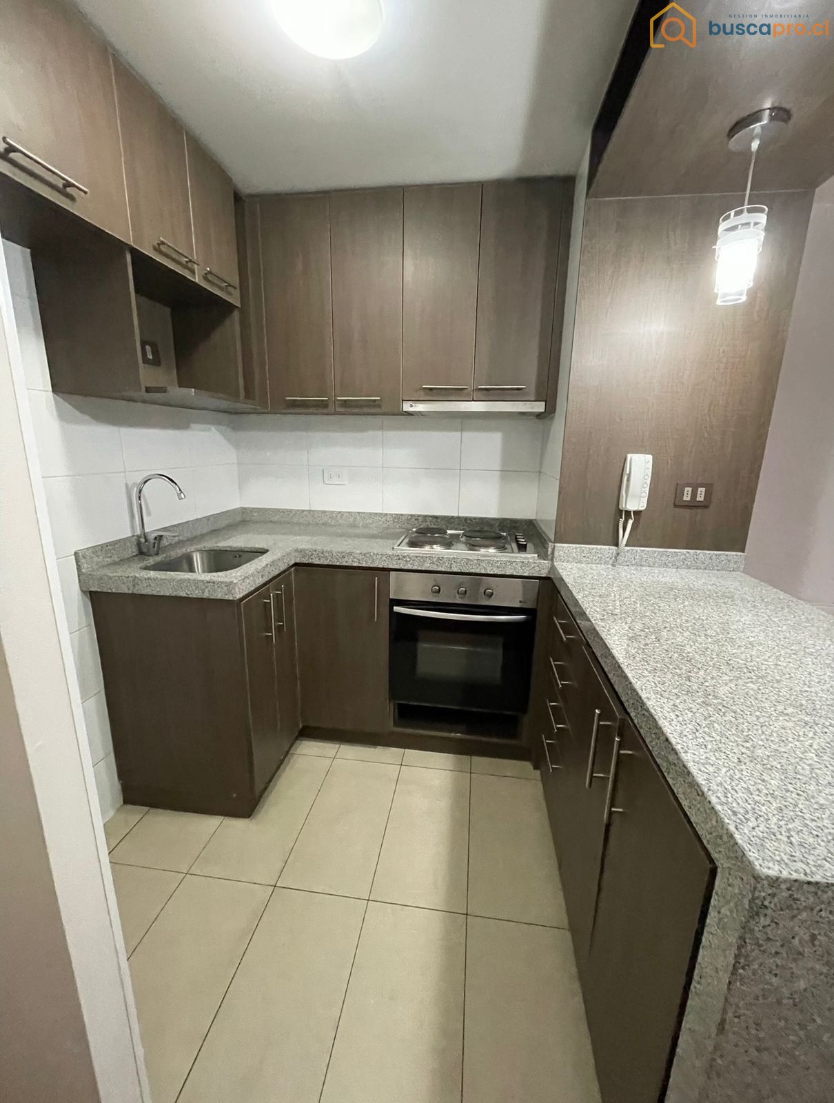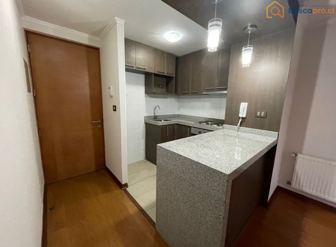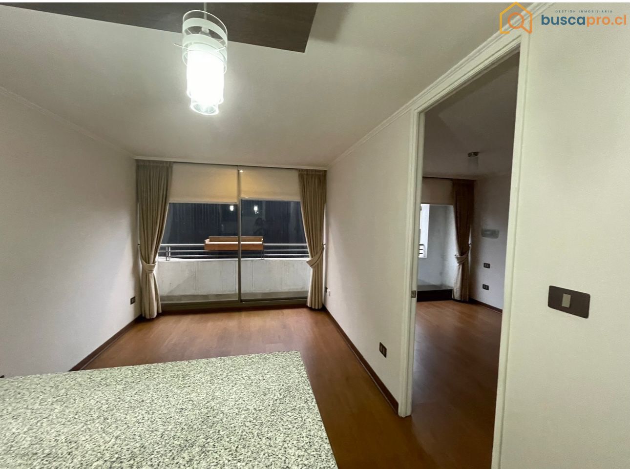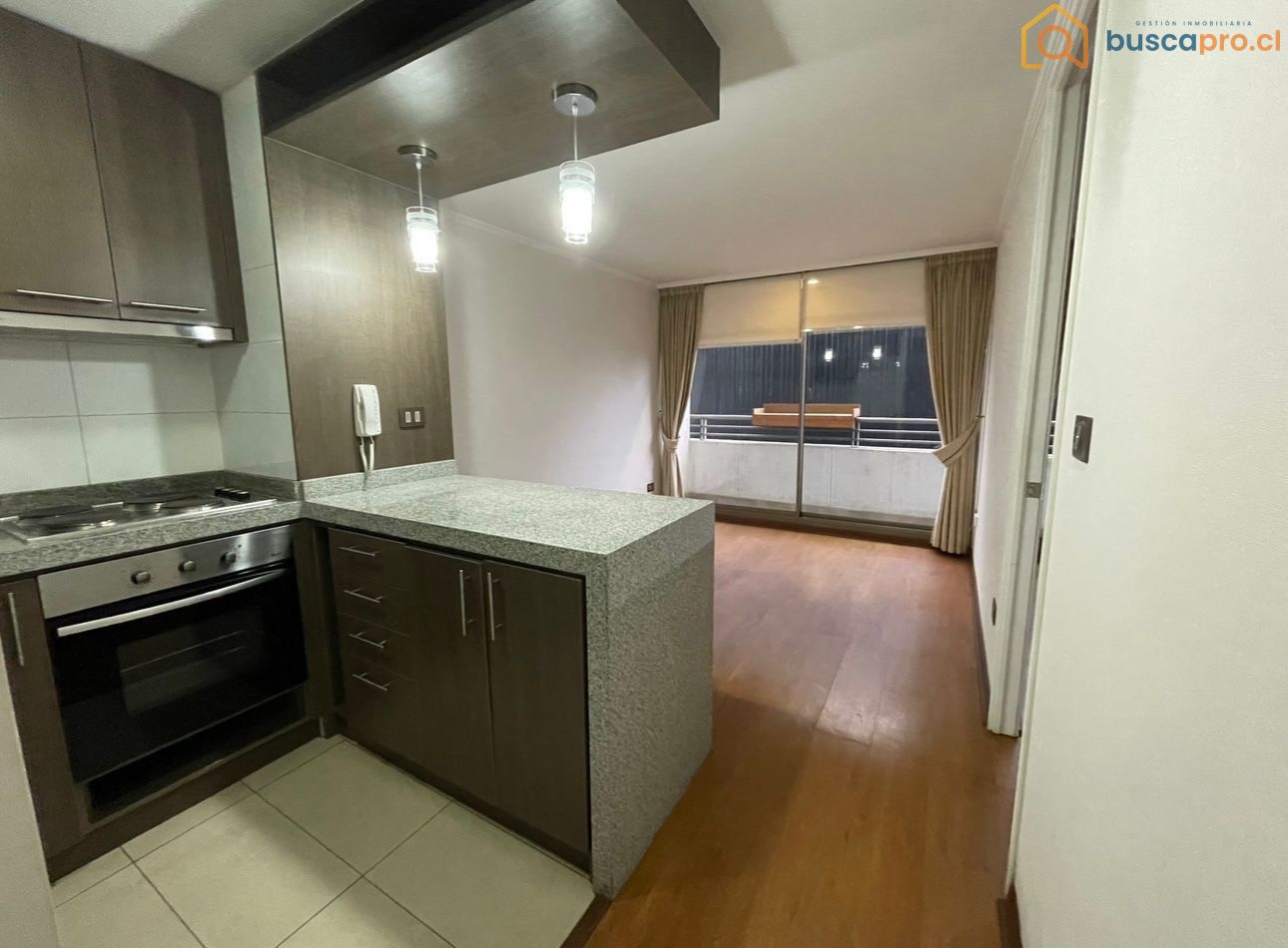 El departamento cuenta con un dormitorio, un baño y una cocina americana completamente equipada con campana, encimera y horno eléctrico. El living se conecta a una terraza, ideal para disfrutar de momentos al aire libre. El dormitorio principal incluye baño en suite y también tiene acceso a la terraza. Entre los detalles de equipamiento, se destacan los pisos de cerámico en cocina y baño, piso flotante en el living y dormitorio, así como ventanas de termopanel que brindan confort térmico y acústico.